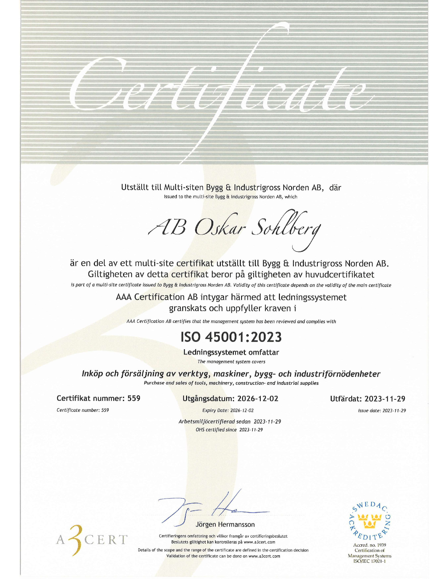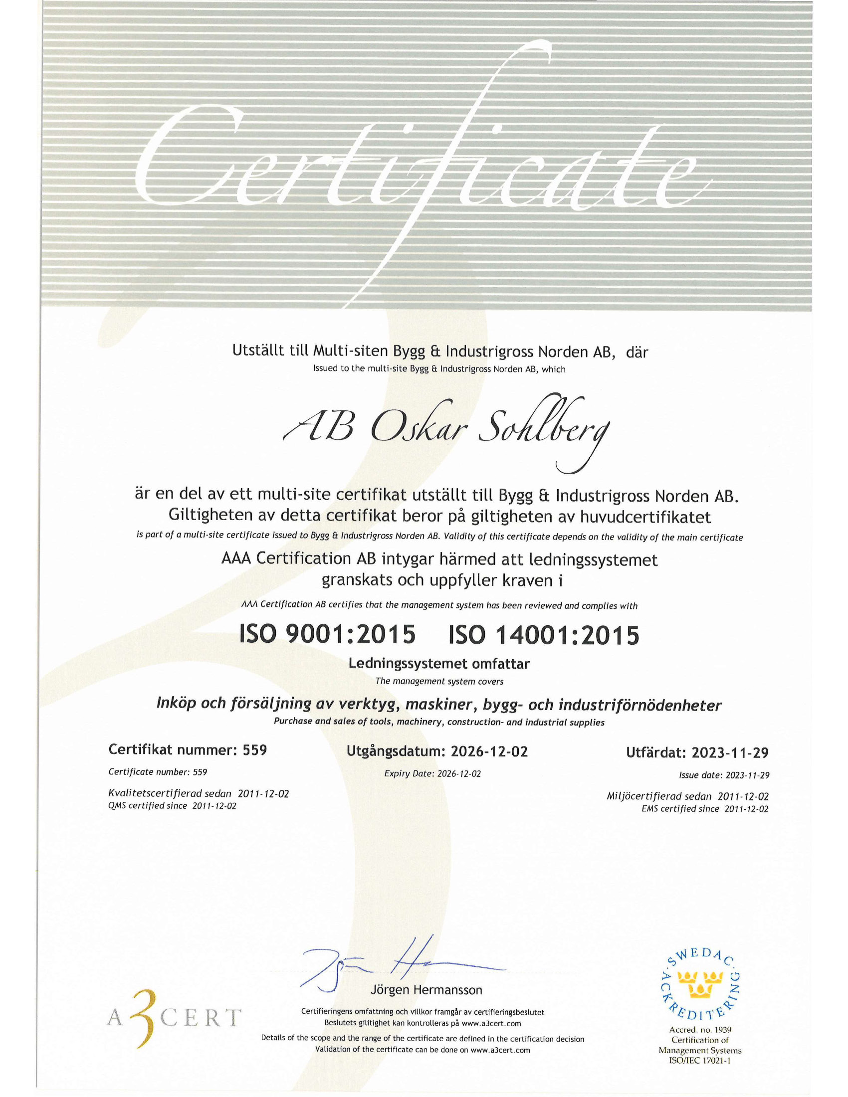 Här kan du ladda ner vårt ISO-certifikat och vår verksamhetspolicy.