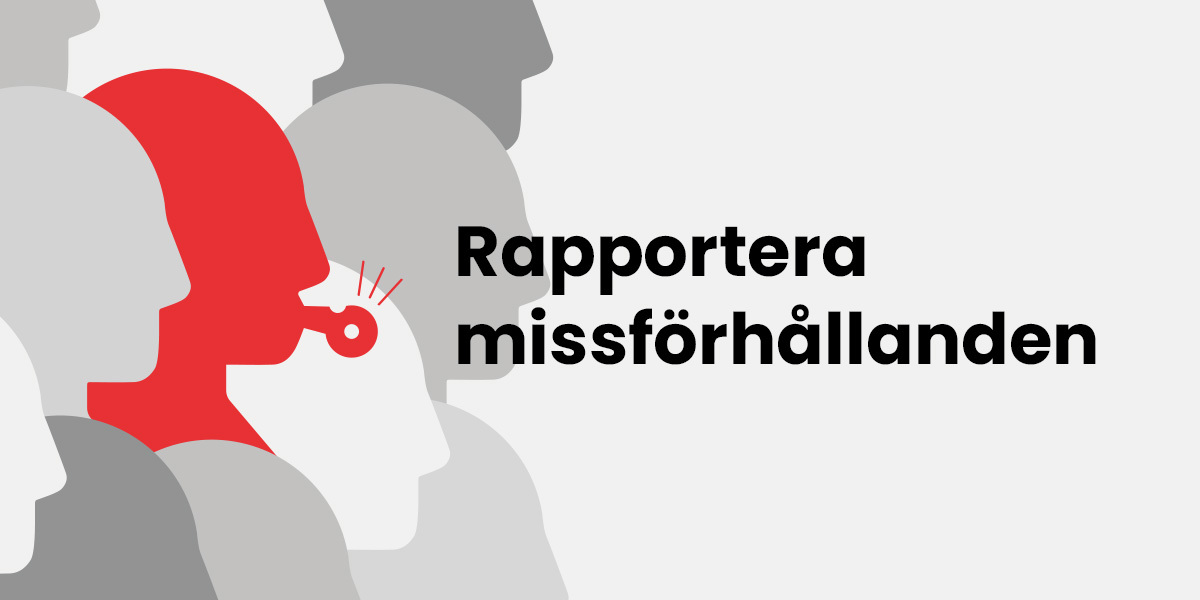 Via nedan länk kan du rapportera såväl kännedom som misstanke om missförhållanden som uppstått eller högst sannolikt kommer att uppstå i vår verksamhet. Syftet är bland annat att upptäcka allvarliga missförhållanden och oegentligheter såsom korruption, jäv eller mutor, det vill säga aktiviteter som är olagliga eller oetiska. Visselblåsarlagstiftningen innebär ett stärkt skydd för den som rapporterar om missförhållanden. Kanalen ska endast användas för missförhållanden i arbetsrelaterade sammanhang och endast om du har skälig anledning att anta att informationen om missförhållandena är sann. Visselblåsarfunktionen ska inte användas för att anmäla mindre förseelser eller för att framföra klagomål.